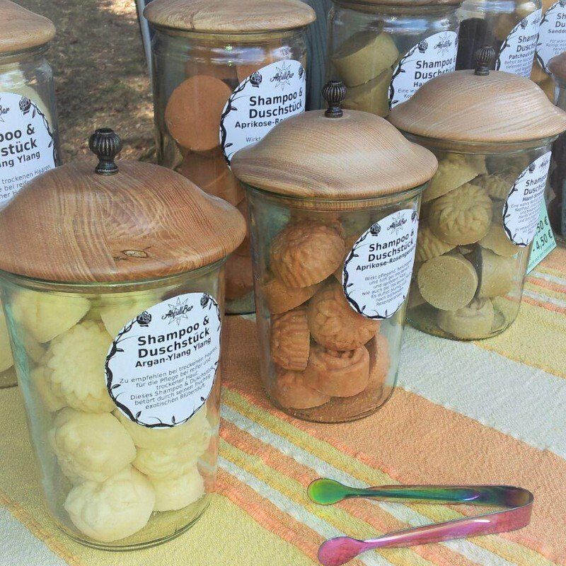 Wie zum Beispiel ihre 'Shampoo & Duschstücke' die wie Seifen aussehen, aber keine ist... -Es ist Shampoo/Duschgel bloß ohne Wasser und Konservierungsstoffe hergestellt, wodurch es eine feste Form bekommt.